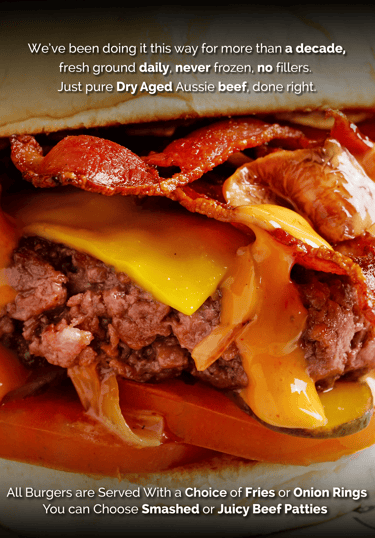 At The Butchers Club Steakhouse, we pride ourselves on offering only the finest selection of premium steaks, sourced from the best Australian cuts. From dry-aged masterpieces to Wagyu and Black Angus, every steak is a testament to quality and flavor. But we don’t stop there—our menu also features a variety of mouthwatering burgers, each crafted with dry-aged patties that are freshly ground daily and never frozen. Whether you’re craving a juicy steak or a perfect burger, our commitment to excellence ensures an unforgettable dining experience every time.