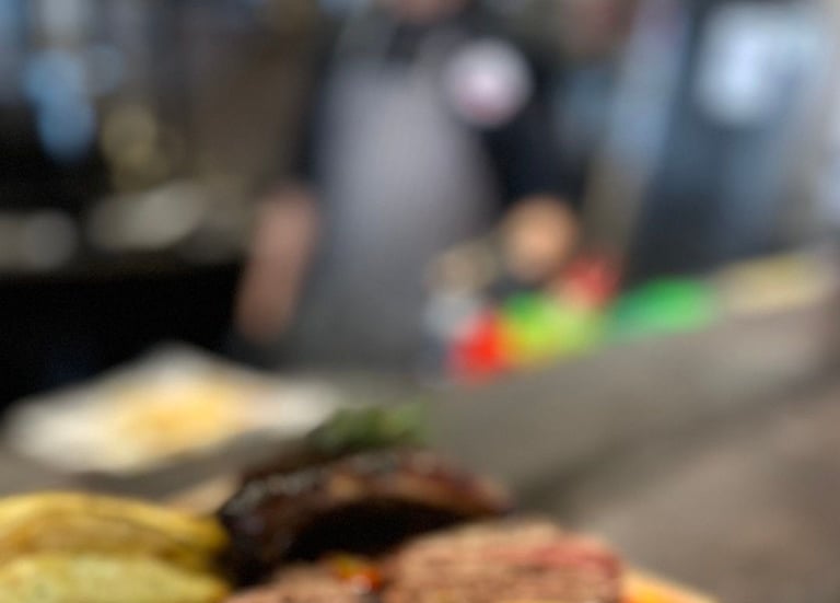 200 gr Australian Rump Steak with sauteed seasonal vegetable and peppercorn sauce.