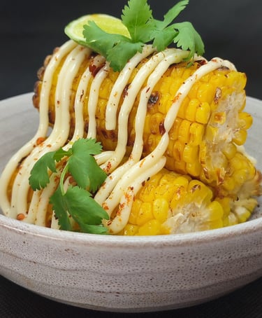 Corn, lime, chili, paprika powder, coriander and mayo.